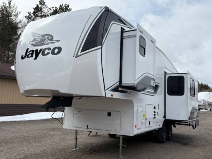 2026 Jayco Eagle SLE Fifth Wheels 24MLE Picture this: crisp mountain air streaming through panoramic windows, the soft glow of an LED fireplace, and the perfect blend of rugged durability and refined comfort—all while parked beside a breathtaking lakeside retreat. The Jayco Eagle SLE Fifth Wheel is more than just an RV; it’s a gateway to unforgettable journeys. Whether you're a seasoned RVer or taking your first leap into the lifestyle, this beautifully designed, easy-to-tow fifth wheel is built to bring you closer to nature without sacrificing comfort. Whether you’re boondocking in the wilderness or camping lakeside with friends, this Jayco Fifth Wheel is designed to take you there in style, comfort, and confidence. The road is calling, and the Eagle SLE is ready to take you there.