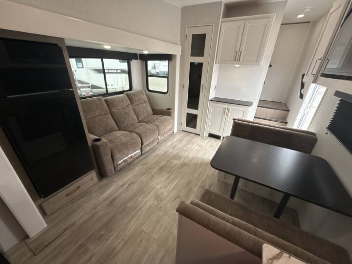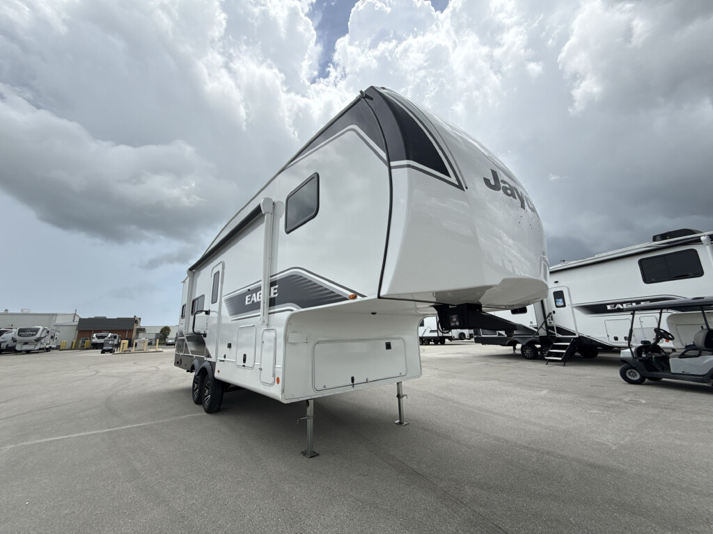 This Fifth-Wheel sleeps 6 people and is available at Camping World in Fort Pierce, FL.