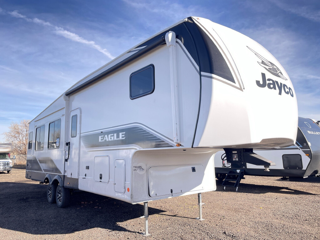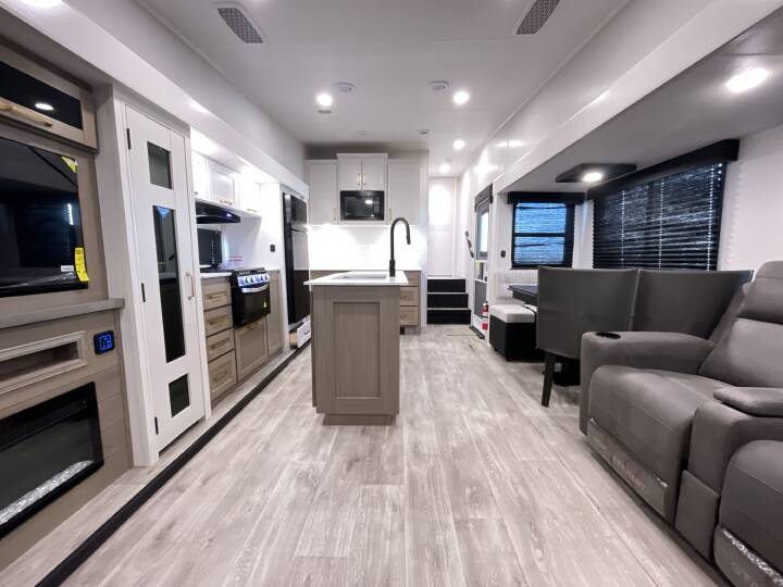 This Fifth-Wheel sleeps 6 people and is available at Camping World in Longmont, CO.
