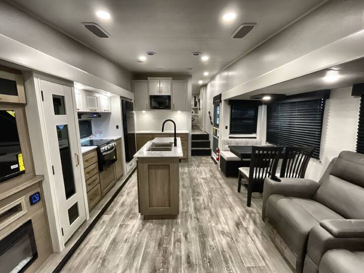 This Fifth-Wheel sleeps 6 people and is available at Camping World in KAYSVILLE, UT.