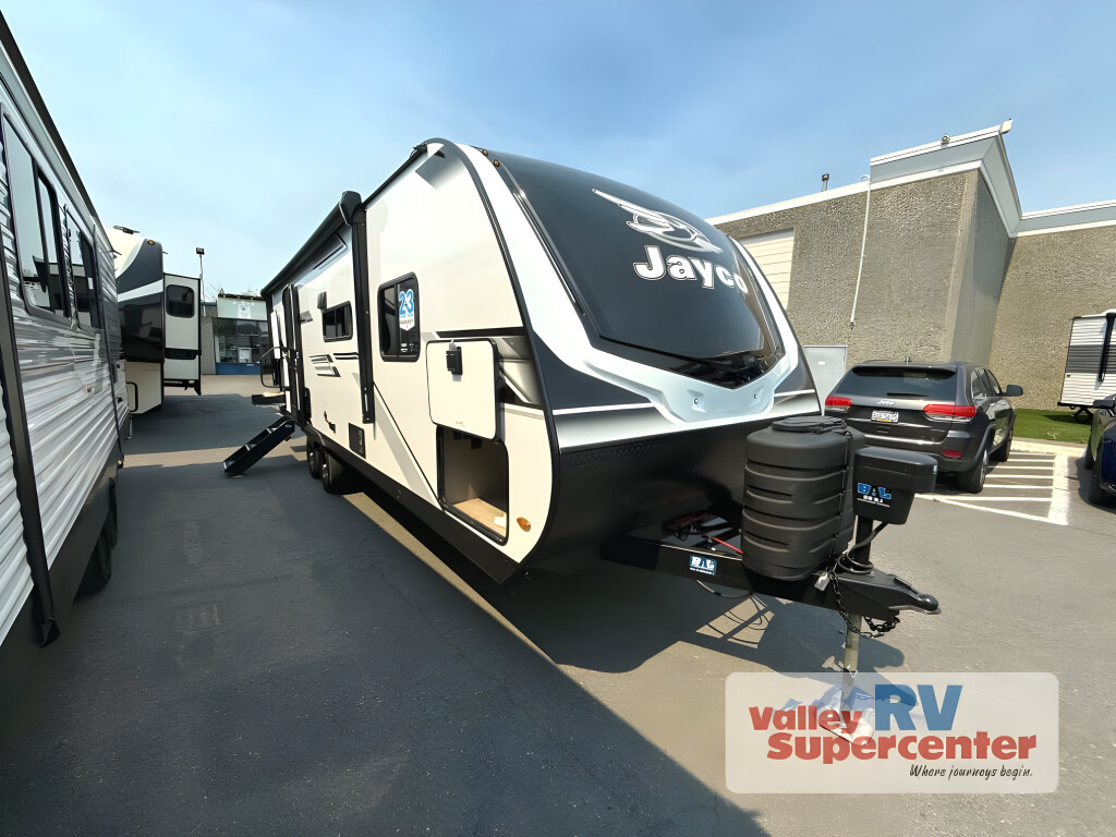 2026 Jayco Jay Feather 25RB, , Basic Information - Year: 2026, Basic Information - Make: Jayco, Basic Information - Model: Jay Feather, Basic Information - Trim: 25RB, Basic Information - Stock Number: 92747, Basic Information - VIN: 1UJBB0BP3T1J80232, Basic Information - Condition: New, Basic Information - Dry Weight: 6150, Basic Information - Type: Travel Trailer, Basic Information - Sleeping Capacity: 6, Basic Information - Length (Feet): 30.08, Basic Information - Construction Body Material: Aluminum, Basic Information - Sidewall Construction: Fiberglass, Basic Information - Dry Weight (kg): 2789.6, Basic Information - Dry Weight (lbs): 6150, Bedroom / Bath - Bathroom, Bedroom / Bath - Bathroom Flooring Type: Vinyl, Bedroom / Bath - Bathroom Location: Rear, Bedroom / Bath - Bathroom Medicine Cabinet, Bedroom / Bath - Bathroom Mirror, Bedroom / Bath - Bathroom Vent / Fan System, Bedroom / Bath - Master Bedroom, Bedroom / Bath - Master Bedroom Door Style: Full Sliding Door, Bedroom / Bath - Master Bedroom Flooring Type: Vinyl, Bedroom / Bath - Master Bedroom Location: Front, Bedroom / Bath - Master Bedroom Mirror Doors, Bedroom / Bath - Number Of Bathrooms: 1, Bedroom / Bath - Number Of Queen Size Beds: 1, Bedroom / Bath - Shower, Bedroom / Bath - Shower Door Type: Curtain, Bedroom / Bath - Toilet, Bedroom / Bath - Toilet Type: Porcelain, Cargo / Storage - Pass-Thru Storage, Comfort - Air Conditioning (BTUs): 13,500, Comfort - Fireplace, Comfort - Heater, Comfort - Sofa, Comfort - Number Of Sofas: 1, Comfort - Number Of Convertible / Sofa Beds: 2, Comfort - Air Conditioning Type: Automatic, Comfort - Sofa Material: Vinyl, Comfort - Heater (BTUs): 35000, Comfort - Heater Type: Automatic, Convenience - Power Vent Fan, Convenience - Sky Light, Convenience - Roof Vents, Convenience - Leveling Jack Type: Front Manual / Rear Manual, Drivetrain - Number Of Axles: 2, Electrical / Generator - Solar Battery Charger, Electrical / Generator - Exterior Plugs, Electrical / Generator - Ground Fault Plugs, Electrical / Generator - Battery, Electrical / Generator - Voltage Meter, Electrical / Generator - Water Pump Power Display, Electrical / Generator - Air Conditioning Prewiring, Electrical / Generator - Heat Prewiring, Electrical / Generator - Battery Power Converter, Entertainment - Television, Entertainment - Radio, Entertainment - Speakers, Entertainment - TV Antenna Prewiring, Entertainment - Cable Prewiring, Entertainment - Surround Sound, Entertainment - Satellite Prewiring, Entertainment - Number Of Radios: 1, Entertainment - Number Of Televisions: 1, Entertainment - Speaker Location(s): Interior / Exterior, Exterior - Exterior Flood Lights, Exterior - Exterior Ladder, Exterior - Exterior Shower, Exterior - Retractable Roof Antenna, Holding Tanks - Fresh Water Holding Tank Gauge, Holding Tanks - Gray Water Holding Tank Gauge, Holding Tanks - Black Water Holding Tank Gauge, Holding Tanks - Holding Tanks, Holding Tanks - Number Of Fresh Water Hold