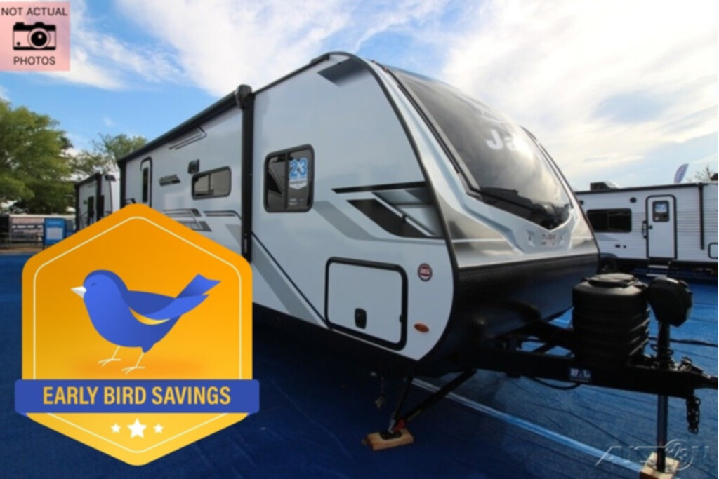 2026 Jayco Jay Feather 25RB, , Basic Information - Year: 2026, Basic Information - Make: Jayco, Basic Information - Model: Jay Feather, Basic Information - Trim: 25RB, Basic Information - Stock Number: 92747, Basic Information - VIN: 1UJBB0BP3T1J80232, Basic Information - Condition: New, Basic Information - Dry Weight: 6150, Basic Information - Type: Travel Trailer, Basic Information - Sleeping Capacity: 6, Basic Information - Length (Feet): 30.08, Basic Information - Construction Body Material: Aluminum, Basic Information - Sidewall Construction: Fiberglass, Basic Information - Dry Weight (kg): 2789.6, Basic Information - Dry Weight (lbs): 6150, Bedroom / Bath - Bathroom, Bedroom / Bath - Bathroom Flooring Type: Vinyl, Bedroom / Bath - Bathroom Location: Rear, Bedroom / Bath - Bathroom Medicine Cabinet, Bedroom / Bath - Bathroom Mirror, Bedroom / Bath - Bathroom Vent / Fan System, Bedroom / Bath - Master Bedroom, Bedroom / Bath - Master Bedroom Door Style: Full Sliding Door, Bedroom / Bath - Master Bedroom Flooring Type: Vinyl, Bedroom / Bath - Master Bedroom Location: Front, Bedroom / Bath - Master Bedroom Mirror Doors, Bedroom / Bath - Number Of Bathrooms: 1, Bedroom / Bath - Number Of Queen Size Beds: 1, Bedroom / Bath - Shower, Bedroom / Bath - Shower Door Type: Curtain, Bedroom / Bath - Toilet, Bedroom / Bath - Toilet Type: Porcelain, Cargo / Storage - Pass-Thru Storage, Comfort - Air Conditioning (BTUs): 13,500, Comfort - Fireplace, Comfort - Heater, Comfort - Sofa, Comfort - Number Of Sofas: 1, Comfort - Number Of Convertible / Sofa Beds: 2, Comfort - Air Conditioning Type: Automatic, Comfort - Sofa Material: Vinyl, Comfort - Heater (BTUs): 35000, Comfort - Heater Type: Automatic, Convenience - Power Vent Fan, Convenience - Sky Light, Convenience - Roof Vents, Convenience - Leveling Jack Type: Front Manual / Rear Manual, Drivetrain - Number Of Axles: 2, Electrical / Generator - Solar Battery Charger, Electrical / Generator - Exterior Plugs, Electrical / Generator - Ground Fault Plugs, Electrical / Generator - Battery, Electrical / Generator - Voltage Meter, Electrical / Generator - Water Pump Power Display, Electrical / Generator - Air Conditioning Prewiring, Electrical / Generator - Heat Prewiring, Electrical / Generator - Battery Power Converter, Entertainment - Television, Entertainment - Radio, Entertainment - Speakers, Entertainment - TV Antenna Prewiring, Entertainment - Cable Prewiring, Entertainment - Surround Sound, Entertainment - Satellite Prewiring, Entertainment - Number Of Radios: 1, Entertainment - Number Of Televisions: 1, Entertainment - Speaker Location(s): Interior / Exterior, Exterior - Exterior Flood Lights, Exterior - Exterior Ladder, Exterior - Exterior Shower, Exterior - Retractable Roof Antenna, Holding Tanks - Fresh Water Holding Tank Gauge, Holding Tanks - Gray Water Holding Tank Gauge, Holding Tanks - Black Water Holding Tank Gauge, Holding Tanks - Holding Tanks, Holding Tanks - Number Of Fresh Water Hold