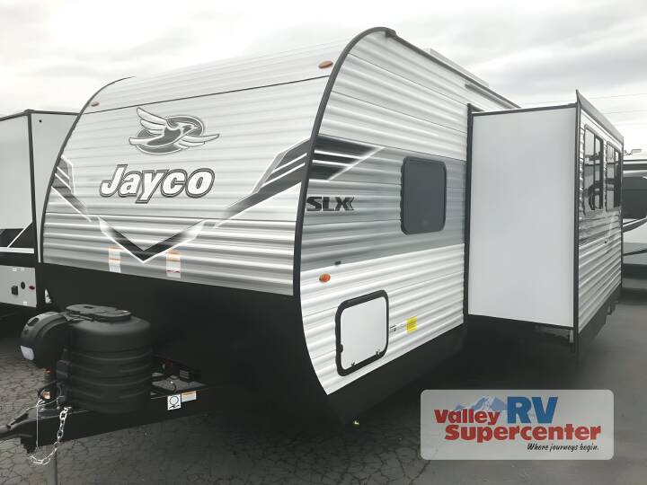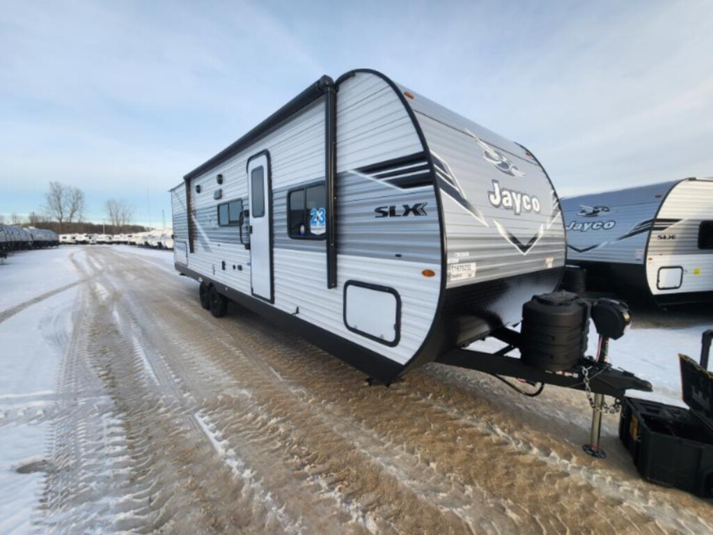 2026 Jayco Jay Flight SLX 284BHS, JAYCO JAY FLIGHT SLX (2026) These Typical Features Vary by Model|Customer Value Package Living Spaces |Power Awning LED Lighting|MORryde StepAbove Entry Step|Large Folding Entry Grab Handle|Keyed-Alike Lock System|Entry Door Window with Shade Prep|Vinyl Flooring Throughout|LED Interior Lighting|Dark Tint Privacy Safety Glass|Window Shades Dining |Full Extension Drawer Guides|Residential Style Countertops|High Rise Kitchen Faucet|12v 8cf Refrigerator|Residential Refrigerator (380DQS only)|Range Hood|Microwave Oven|Outdoor LP Quick Connect (n/a Sport Edition)|| Electronics |Backup Camera Prep|Digital TV Antenna|AM FM Bluetooth Stereo|Outdoor Cable TV Hookup|Outdoor Marine Grade Speakers Sleeping |Plywood Bed Platforms|Fitted Bed Sheet|300# Rated Single Bunks|600# Rated Double Bunks Bathroom |Bathroom Mirror|Tub Shower Surround|Bathroom Skylight|Foot Flush Marine Grade Toilet|Bathroom Vent Mechanicals |Rooftop Solar Prep|20# LP Bottles|30-Amp Detachable Service Cord|19k Furnace (Sport Editions)|Wall-Mount 8k AC (single axle)|Roof 13.5k AC (double-axle)|Tankless Hot Water Chassis Build |Integrated A-Frame Chassis|Easy Lube Hubs|Electric Self-Adjust Brakes|Nitrogen-Filled Radials|Spare Tire with Cover Galvanized Steel Wheel Wells|Magnum Truss Roof System|Seamless Roofing Membrane|Gutters with Large Downspouts|Aluminum Exterior|LED Exterior Lighting|Stabilizer Jacks Optional Elite Package Highlights |Fiberglass Sidewalls|Enhanced Graphics|Front Accent LED Lighting|Aluminum Wheels|Dinette Storage Doors|Pull-Out Kitchen Faucet|Decorative Window Treatments|Fireplace Spaceheater (some models) Optional Baja Package Highlights |Deluxe Graphics Package|Increased Ground Clearance|16-inch Off-Road Tires|Enclosed Underbelly|Four Stabilizer Jacks|30# LP Bottle
