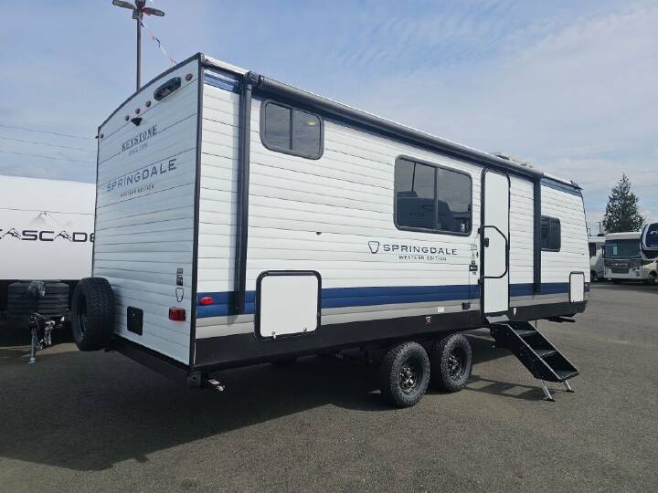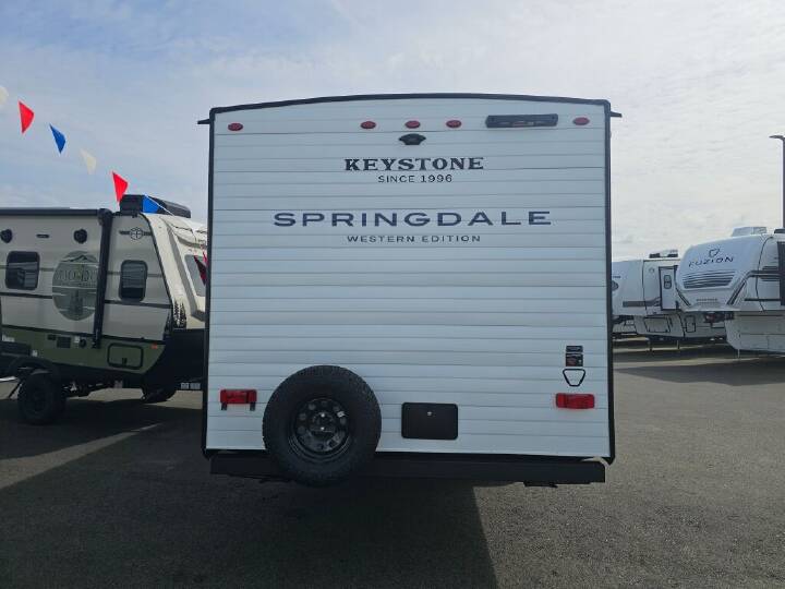 2026 Keystone Springdale, 2300BHWE, Experience the 2026 Keystone Springdale 2300BHWE, a new travel trailer designed to deliver spacious comfort and versatile living for your RV adventures. Measuring 27.6 feet in length, this model offers ample room to relax and enjoy your getaway with family or friends. Sleeping accommodations for up to nine people make it an excellent choice for larger groups or families who want to travel together without sacrificing comfort. The thoughtfully designed bunkhouse provides a dedicated space for restful sleep or quiet downtime, adding significant flexibility to your travel plans. Inside, the living area is well appointed for easy living and entertaining, with plenty of storage and thoughtful layouts that make spending time indoors enjoyable. The easy-to-use awning extends your living space outdoors, perfect for relaxing or sharing meals in the fresh air. This Keystone travel trailer features convenient leveling jacks to ensure your RV remains steady and comfortable wherever you park. The large freshwater and gray and black water tanks support longer stays and reduce the need for frequent hookups, giving you more freedom to explore. Towing is made easier with a manageable hitch weight of 595 pounds and a dry weight of 4724 pounds, suitable for many midsize tow vehicles. This model is built to provide a dependable and enjoyable RV experience with Keystone's reputation for quality. As a family-owned, award-winning local RV dealer with multiple locations in Sumner, Everett, Kent, and Mt. Vernon Washington, Poulsbo RV here to help you find the perfect RV. Stock#: K6280, VIN: 4YDTSGK23TG102500.