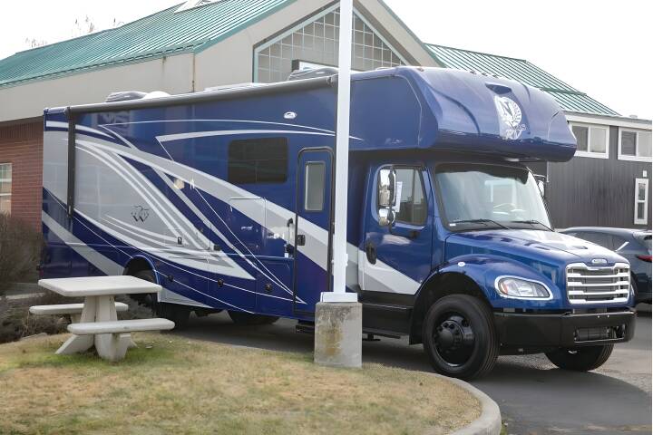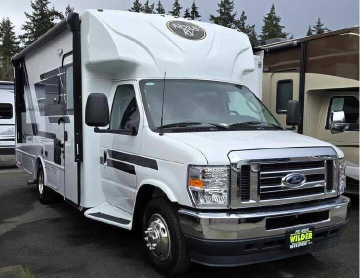 Enjoy a home away from home with this motorhome! The rear private bedroom has a queen bed slide to lay your head on at night and a spacious wardrobe to keep your things tidy. There is also a private toilet and sink plus a shower across the hall that makes a split-style bath so two can freshen up at once. The bunk over cab offers another comfortable place to sleep, as does the deluxe tri-fold sofa. Prepare your best home cooked meals with the three burner cooktop and enjoy them at the booth dinette! If you're looking for quality, safety, and luxury in a motorhome, look no further than one of these NeXus RV Wraith Super C diesel motorhomes! A Freightliner S2 RV chassis holds them together and a 6.7L 340 HP Cummins ISB diesel engine coupled with a 6-speed Allison transmission powers them. They have a best in class "all steel-composite" that is up to 72% stronger for safer rides and the steel in the superstructure helps minimize potential water damage while also maximizing the thermal and sound insulation. Experience at-home touches like a deluxe innerspring mattress, upgraded flooring, solid surface kitchen countertops, and night roller shades for privacy. You will be able to enjoy endless hot showers with an on-demand hot water heater, and the 6.0 Onan diesel generator will keep you powered up for every adventure. Outside, you'll love the look of the deluxe 4-color full body paint, and the frameless windows with automotive seal will help keep the elements out.
