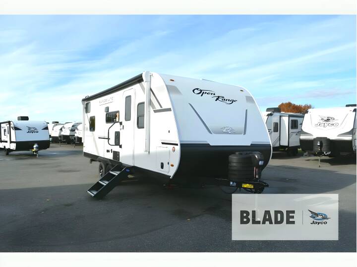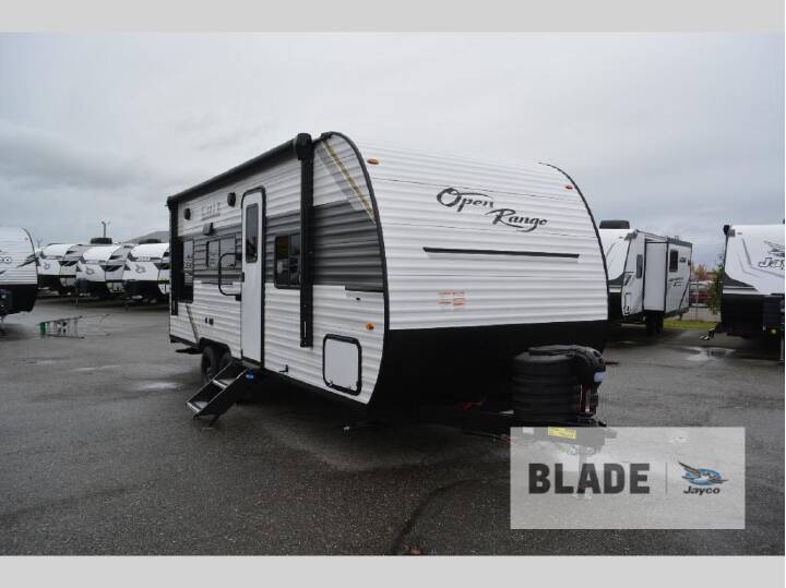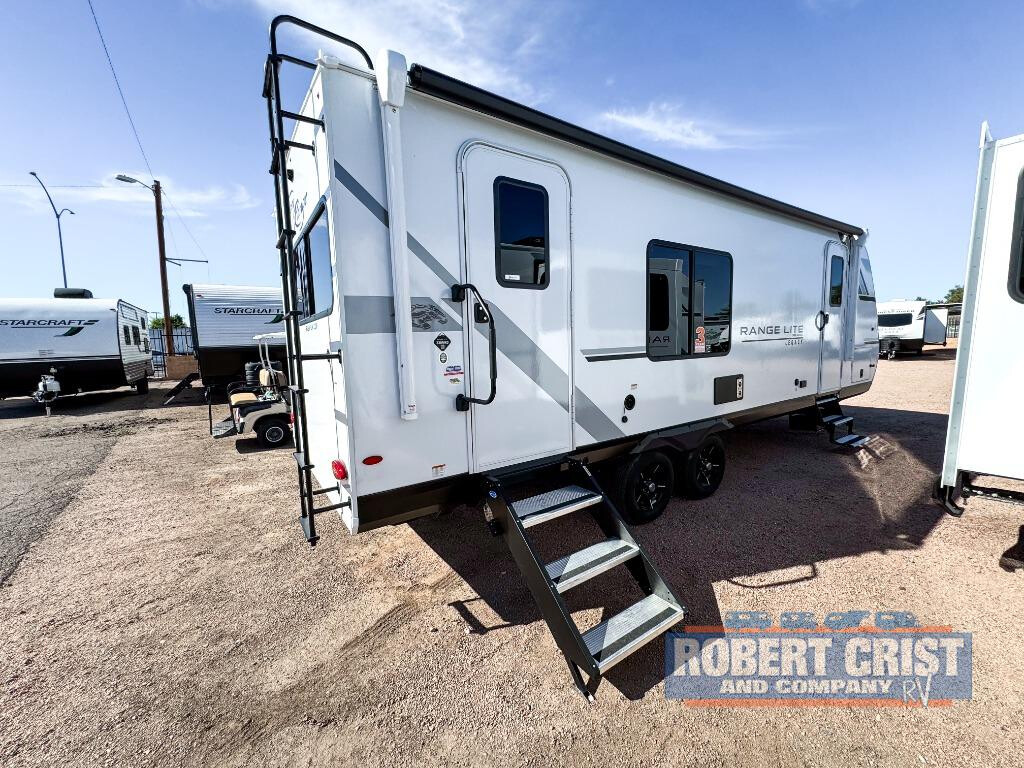 It won't be hard to find comfort in this dual entry travel trailer! The front private bedroom includes one of those entry doors, along with a queen bed, dual nightstands, and overhead storage. A full bath is centrally located for easy use day and night, and you'll appreciate linen storage here to keep towels organized. Head to the rear kitchen where you'll find ample counter space to prep meals, plus a pantry and 12V refrigerator within the large slide out. There is a booth dinette and theater seat for comfortable seating spaces when you don't want to sit outdoors under the 20' power awning! With any Range Lite travel trailer by Open Range RV, you will enjoy comfort and convenience at every turn! Each one is built with vacuum bonded sidewalls with interior and exterior Azdel, a 2" TuffShell floor, and front diamond plating to help protect against rock and debris on the way to the campground. The Xtend l Solar Package includes a 200-watt solar panel with a 30-amp solar controller for off-grid capabilities, and you're sure to appreciate the tankless water heater onboard for endless hot showers. Head inside to enjoy residential cabinetry with large doors and drawers, roller shades with radiant barrier backer, Invision kitchen appliance package, and many more comforts! Choose the optional Legacy Package for a molded front cap, 5-point power stabilization system, solid surface countertops, and more optional features to further customize your travel trailer! OPTIONS