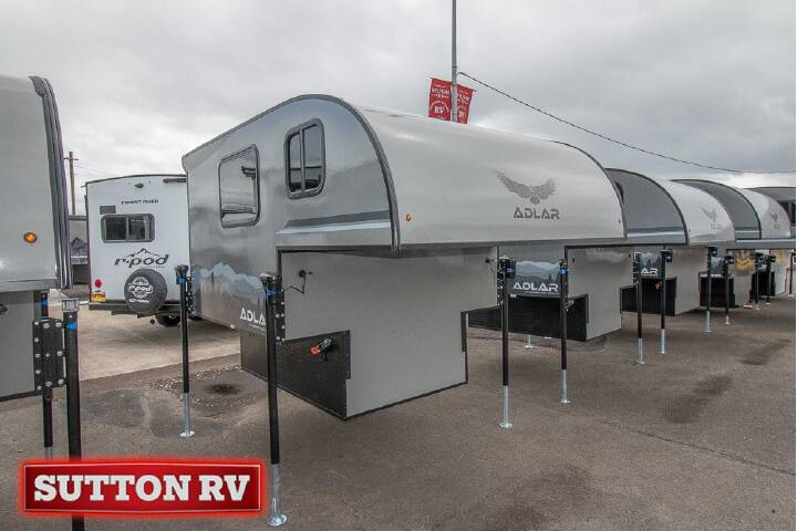 2026 SOARING EAGLE ADLAR 5.5 XL, The ADLAR 6.5XL truck camper takes the concept of ultra-lightweight, entry-level campers to the next level. The interior of the Adlar 6.5XL is surprisingly spacious, featuring a pull-out queen bed in the cabover; a nice-sized dinette (30” wide) for enjoying meals, games, or work, which also quickly converts to a second sleeping area; a 12V refrigerator; overhead storage; 100A lithium battery (Bluetooth heated); MaxxAire fan with rain sensor and remote; and the unit comes pre-wired for roof A/C, roof solar panels, and power jacks - all popular options. Other options include a microwave oven, platinum gray exterior fiberglass, roof rack system, batwing awning, portable toilet, and more.