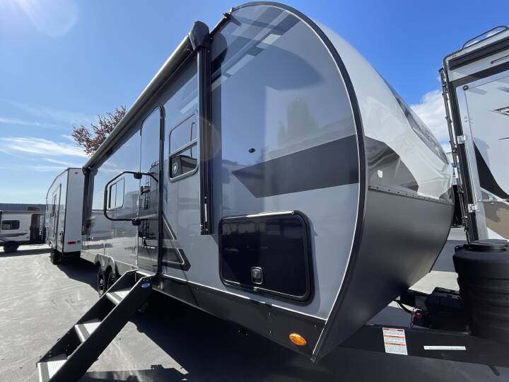 Interior Comfort & Living Features Front Private Bedroom: King-size or queen bed with overhead cabinets and wardrobe storage (king bed common on many units) Walk-Through Bath: Positioned between bedroom and main living area for easy access from both sides Living Space: Booth dinette for meals and extra sleeping space Sofa for lounging Entertainment center often includes a cozy fireplace for heat and ambiance (tandem axle versions) Kitchen & Amenities Kitchen: Three-burner cooktop Refrigerator (12 V) Sink with counter space and overhead cabinets Pantry for food storage (tandem axle) Tankless Water Heater: Continuous hot water supply Vent & Climate Prep: Solar and Wi-Fi prep, powered bathroom vent fan Washer/Dryer Prep: Available on many units  Construction & Exterior Features Frame & Build: BAL frame with powder-coated American steel Flooring: 5/8? tongue-and-groove floor system Storage: Pass-through exterior storage and insulated baggage doors Awning: Single large awning (about 19') for outdoor shade Convenience: Keyed-alike entry & baggage doors, backup camera prep, LED exterior lights, and motion-detector storage lights  Interior Features & Finishes Interior Style: Modern farmhouse design with deep-tint privacy windows and seamless countertops Comfort: High-density dinette cushions, Bluetooth speaker system Airflow System: RV Airflow System improves AC distribution (tandem axle versions) Lighting & Storage: Cabinet toe-kick LED lighting, adjustable pantry shelves, and StorMore night stands with storage & charging stations Skylight: Over shower for added natural light  Climate & Utility Prep Climate Package: Enclosed heated underbelly and reflective roof for temperature control (tandem axle models) Roof & Warranty: Walkable PVC roof with limited lifetime warranty  Call, Click, Text or Visit Us Today at Campers Inn of Kings Mountain and Find Your Away!   Stock 360 Tour & Stock Images may be shown. Colors & Specs may vary.